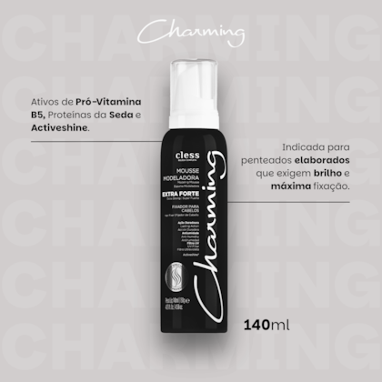 A Mousse Modeladora Charming Extra Forte 140ml modela, fixa, estiliza e texturiza os fios com facilidade. Auxilia na preparação do cabelo antes da finalização, proporcionando volume, controle e sustentação duradoura. Perfeita para montagem e finalização de diferentes estilos e tipos de cabelo.