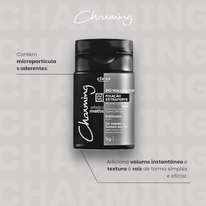 O Kit Charming Extra Forte combina Hair Spray e Mousse Modeladora desenvolvidos para proporcionar fixação intensa, controle e finalização profissional em diferentes tipos de cabelo. Ideal para criação de penteados estruturados, o kit ajuda na modelagem, texturização e manutenção do estilo por mais tempo.