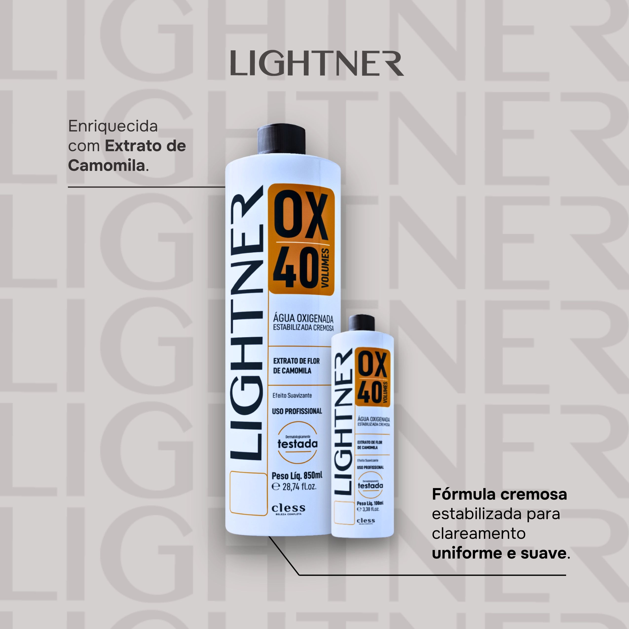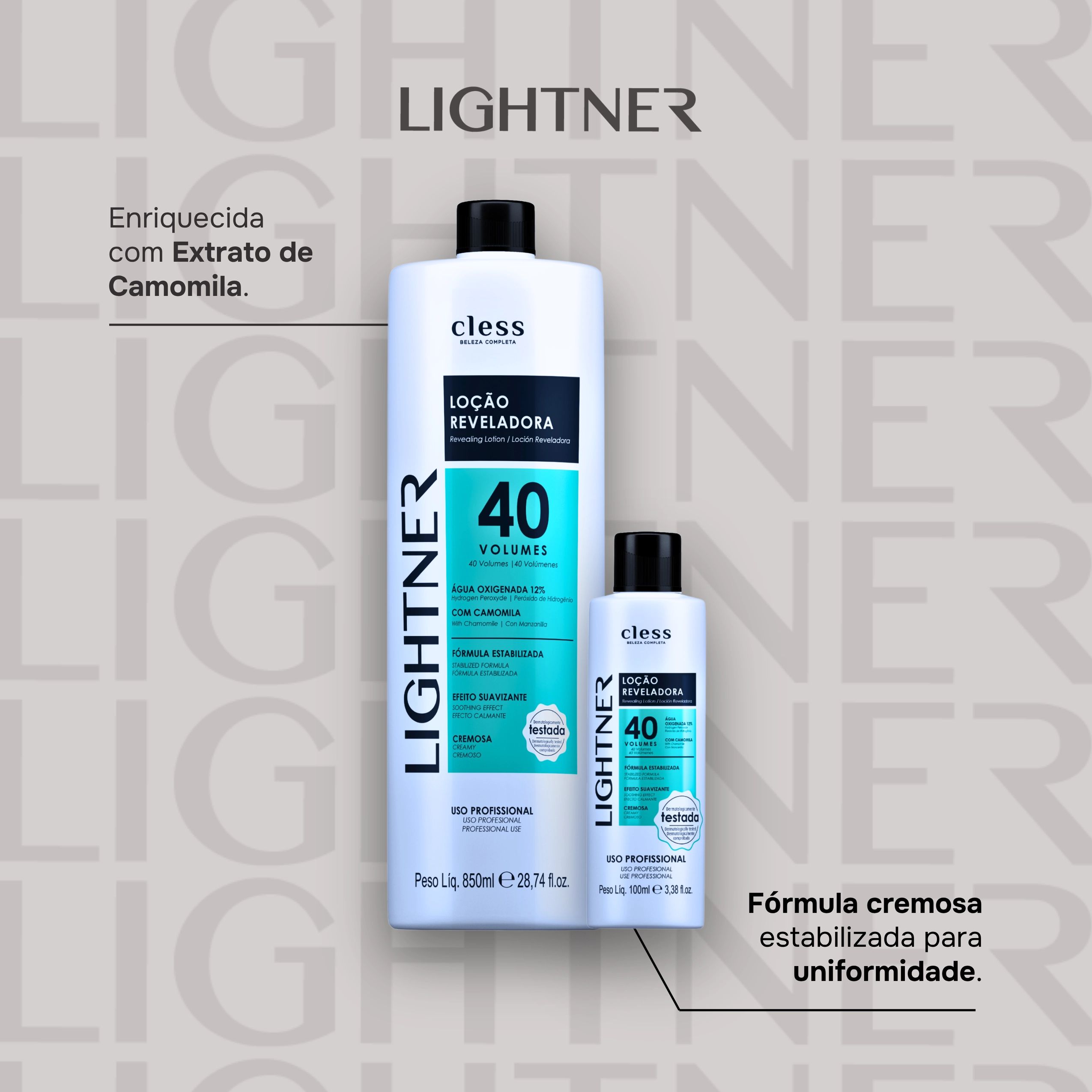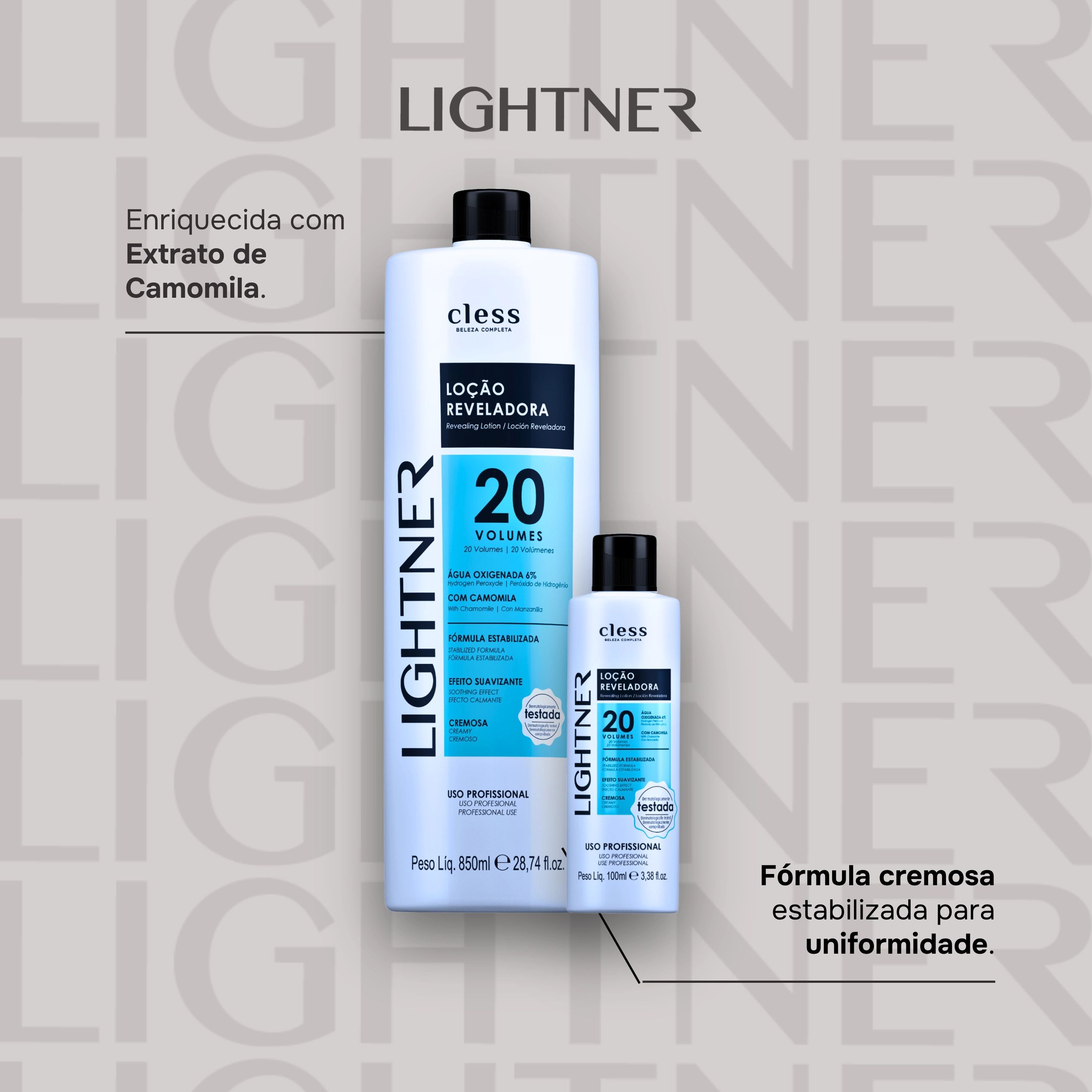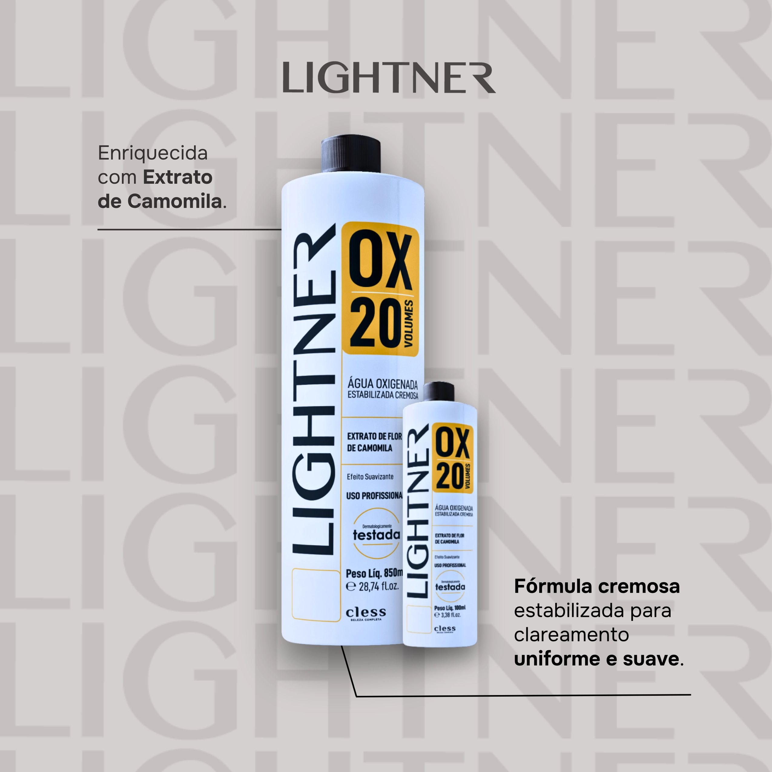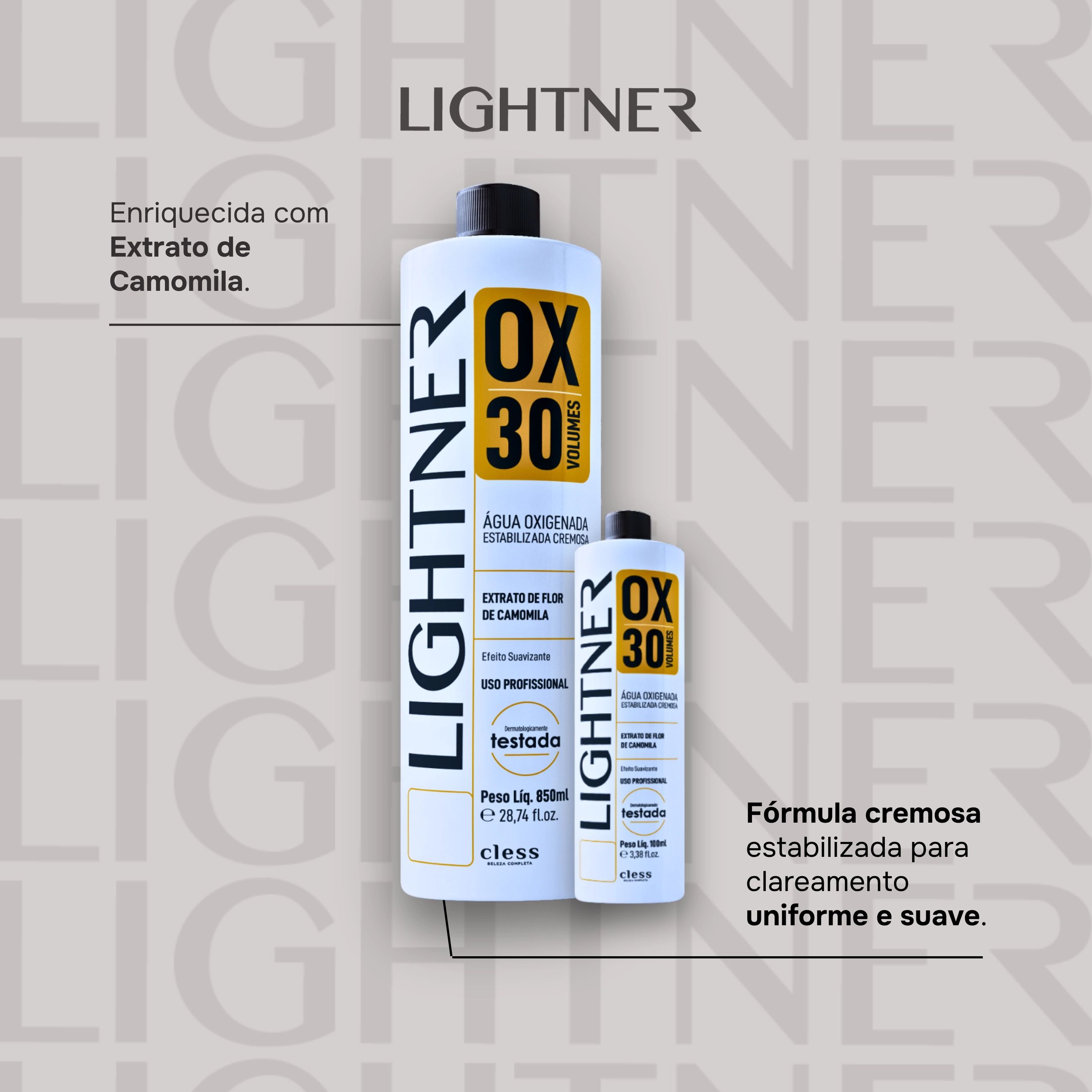 Lightner é uma marca feita para profissionais da beleza que buscam resultados excepcionais sem abrir mão do custo-benefício. Com produtos de altíssima qualidade, garante performance superior e consistência em cada aplicação. Lightner é excelência, inovação e confiança — a marca que eleva o trabalho de quem transforma beleza em arte.
