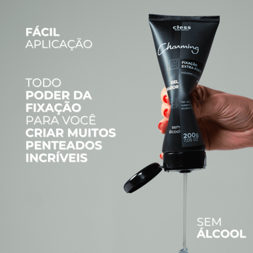 O Gel Fixador Charming Men foi desenvolvido para homens que exigem performance e praticidade no dia a dia. Sua fórmula de alta performance proporciona fixação duradoura, garantindo controle do penteado por horas sem comprometer a naturalidade dos fios.
