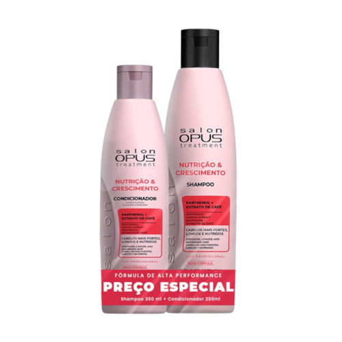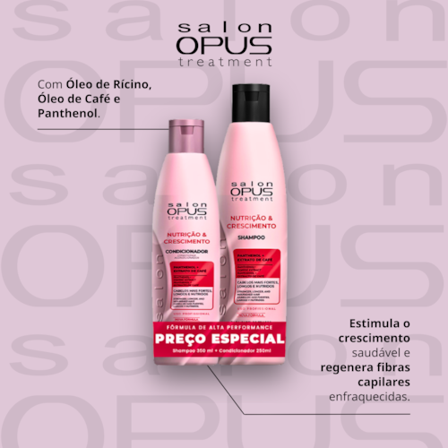 O Kit Shampoo e Condicionador Salon Opus Nutrição e Crescimento foi desenvolvido para promover um tratamento completo que nutre profundamente, fortalece os fios e estimula o crescimento saudável dos cabelos.