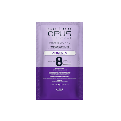 O Pó Descolorante Capilar Ametista 8 Tons Salon Opus 20g foi desenvolvido especialmente para promover clareamento eficiente e uniforme de até 8 tons, enquanto auxilia na proteção e cuidado da fibra capilar durante o processo químico. Sua fórmula profissional com ativos condicionantes contribui para reduzir os danos causados pela descoloração, preservando a resistência, a maciez e o brilho natural dos cabelos.
