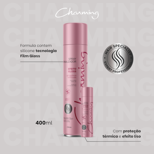 Avise-meO Spray Finalizador Charming Efeito Gloss foi desenvolvido para proporcionar um acabamento profissional com brilho espelhado, proteção térmica e fragrância sofisticada, deixando os cabelos radiantes do toque ao aroma.